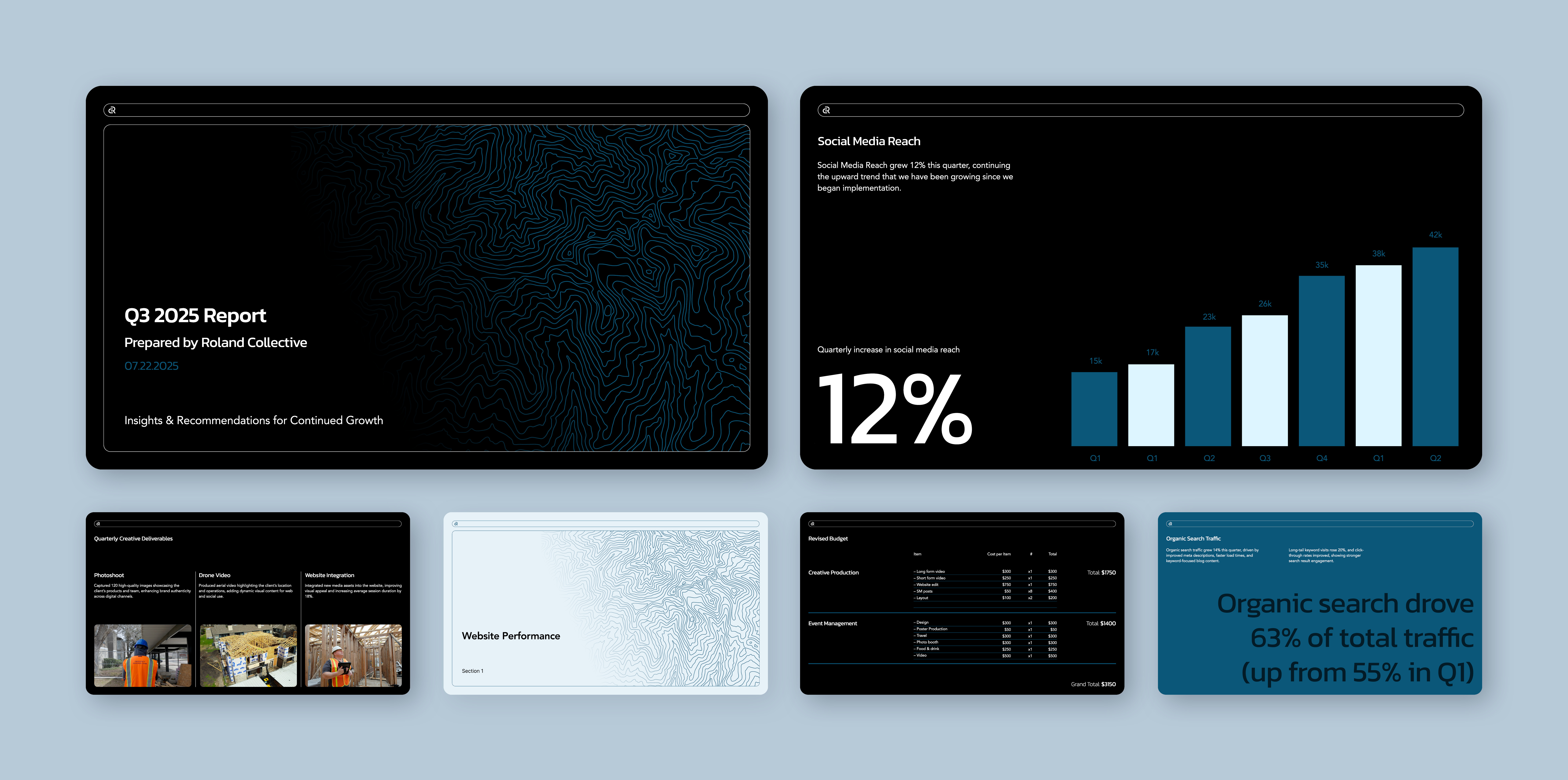 Roland Collective, a digital marketing agency, was evolving from a video-heavy focus to an all-in-one digital marketing approach. They needed a visual identity and website that reflected their expanded services while remaining flexible to adapt to future growth and changes.